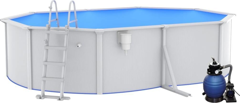Басейн каркасний овальний vidaXL 490 x 360 x 120 см, білий + насос з пісочним фільтром + драбина