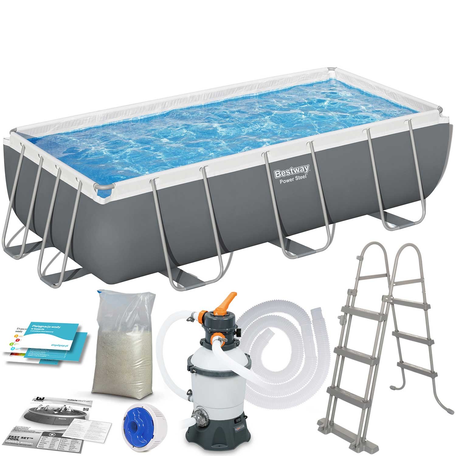 Басейн каркасний прямокутний 11в1 Bestway 56623 Power Steel 956 x 488 см - білий