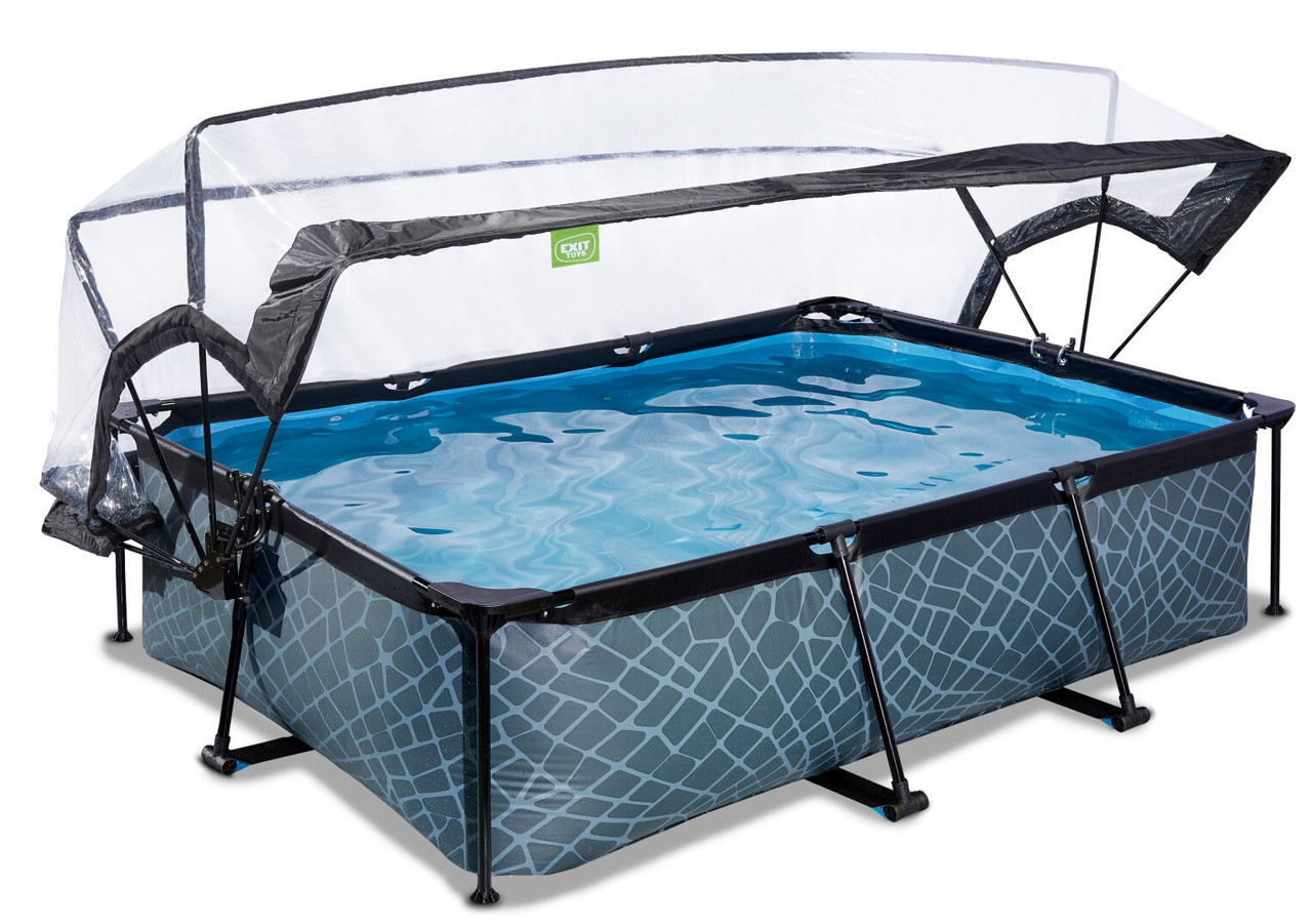 Басейн каркасний прямокутний EXIT з куполом 220х150х65 см в кольорі "камінь"