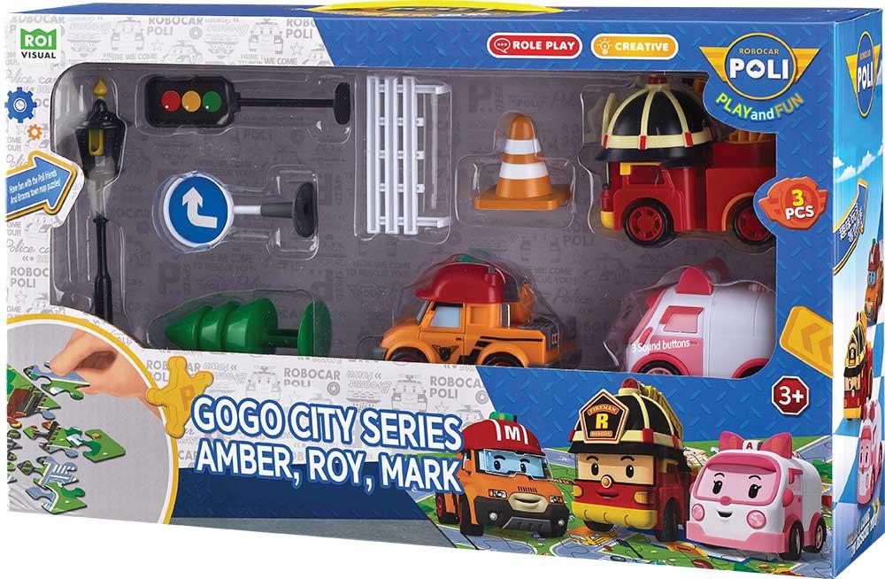 Набір машинок дитячих Roi Visual Міська серія GoGo Ембер, Рой, Марк + аксесуари