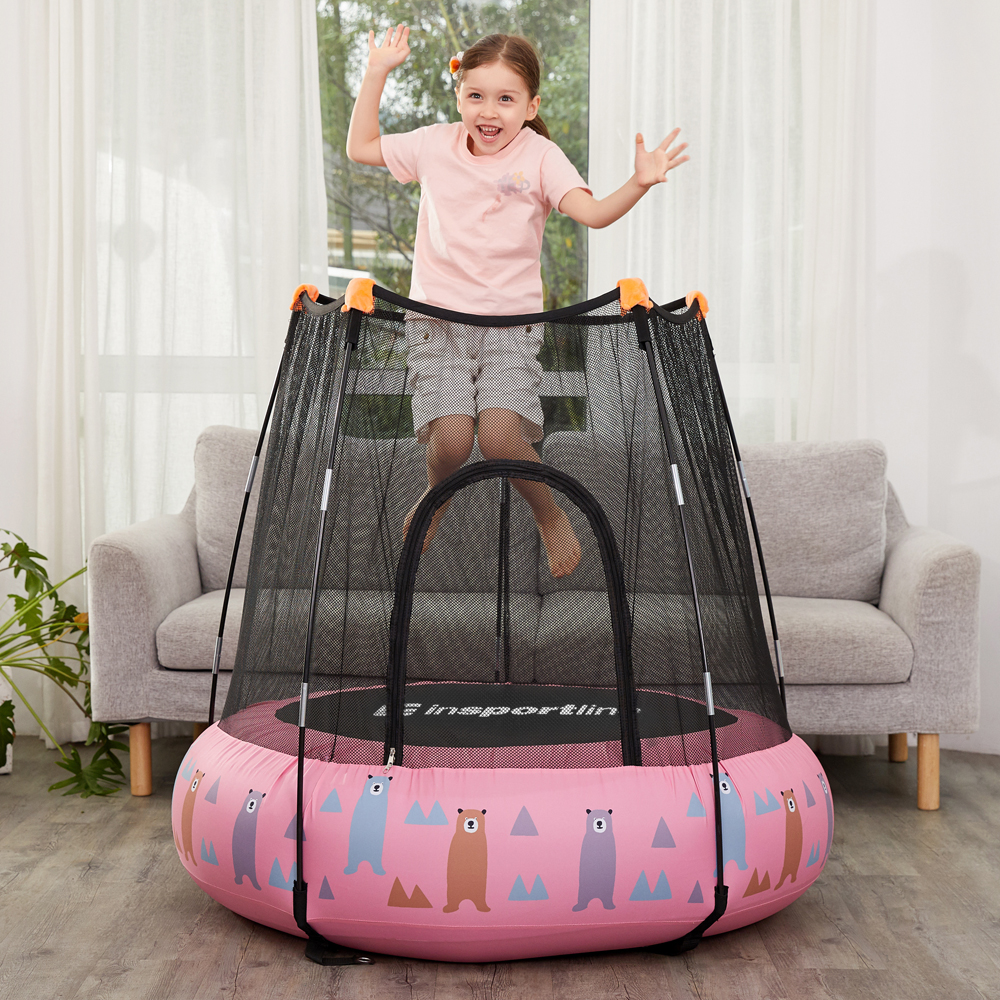 Батут оснащений захисною сіткою висотою 75 см, 5 складаними опорними сітками із 5 м’якими кришками на верхній частині сітки для додаткової безпеки та 5 міцними штифтами для закріплення батута на землі при використанні на відкритому повітрі. Ваш малюк полюбить барвистий дитячий надувний батут INSPORTline Nufino.