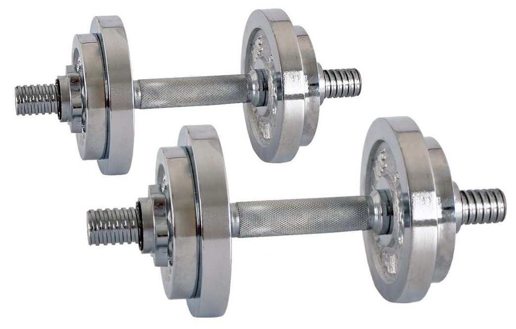 Гантелі Insportline 2 х 10 кг виготовлені з високоякісного металу, покриті вологостійким і стійким до поту хромованим шаром. У комплект входять два диски різної ваги, вісь і захисна нитка. Диски виготовлені з високоякісного металу та міцного матеріалу, що запобігає стиранню. Фіксатори для гантелей мають нековзні руків'я, що забезпечує повну стабільність утримання гантелей в руці під час різноманітних найскладніших вправ.