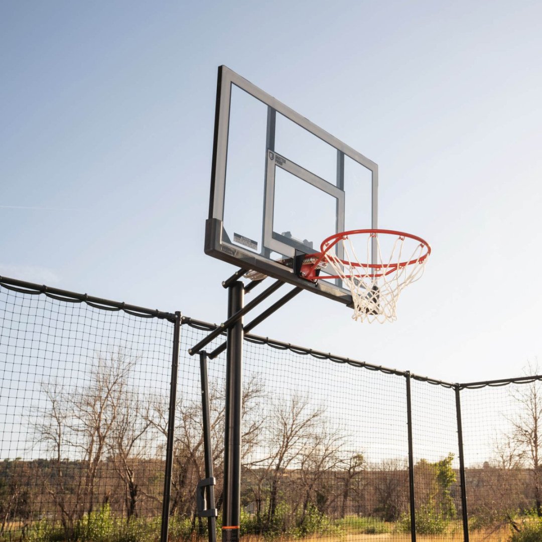 До стійки входить еластичне кільце Slam-It, яке обладнане подвійною пружинною системою, що амортизує удари під час кидків зі стрибка чи данків. Це значно знижує навантаження на щит і продовжує термін служби конструкції. Нейлонова сітка витримує будь-які погодні умови - дощ, сонце чи мороз.
