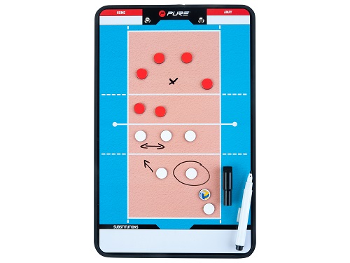 Тактична дошка Pure2Improve COACHBOARD VOLLEYBALL - це незамінний інструмент для тренерів, які прагнуть ефективно пояснювати ігрові схеми та вдосконалювати командну взаємодію. Вона допомагає чітко демонструвати розстановку гравців, відпрацьовувати тактику подач, прийому та атакувальних комбінацій.