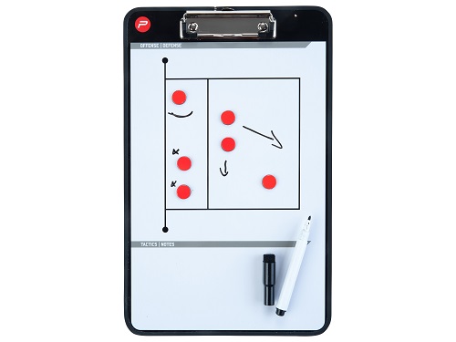 Завдяки функції сухого стирання тренер може швидко вносити зміни у тактичні схеми під час гри чи тренування. У комплект входить маркер із гумкою для стирання та набір білих і червоних магнітів. Легка пластикова конструкція робить дошку зручною для транспортування та використання як у залі, так і на виїзних матчах.