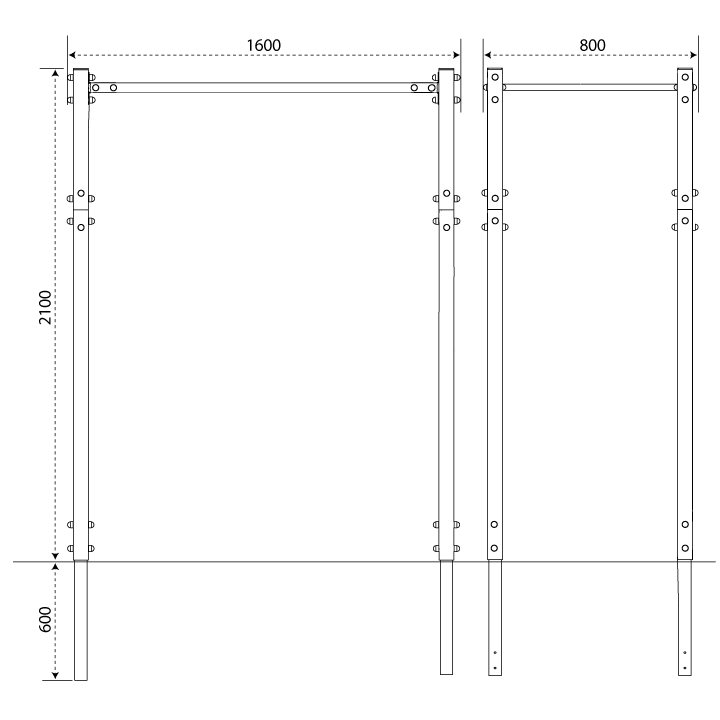 Турнік має чотири опори, розташовані під землею. Це забезпечує належну жорсткість під час навчання.