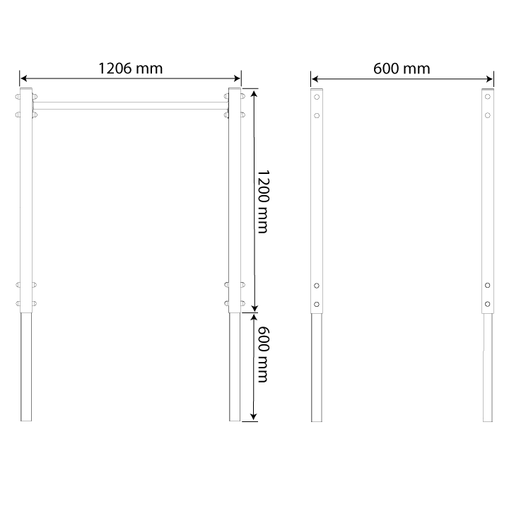 Безпека вправ вимагає, щоб частина кожного стовпа була розташована нижче рівня землі та забетонована. Надземна і підземна частини кріпляться за допомогою шурупа, завдяки чому конструкцію можна демонтувати і зберігати, коли вона не використовується.