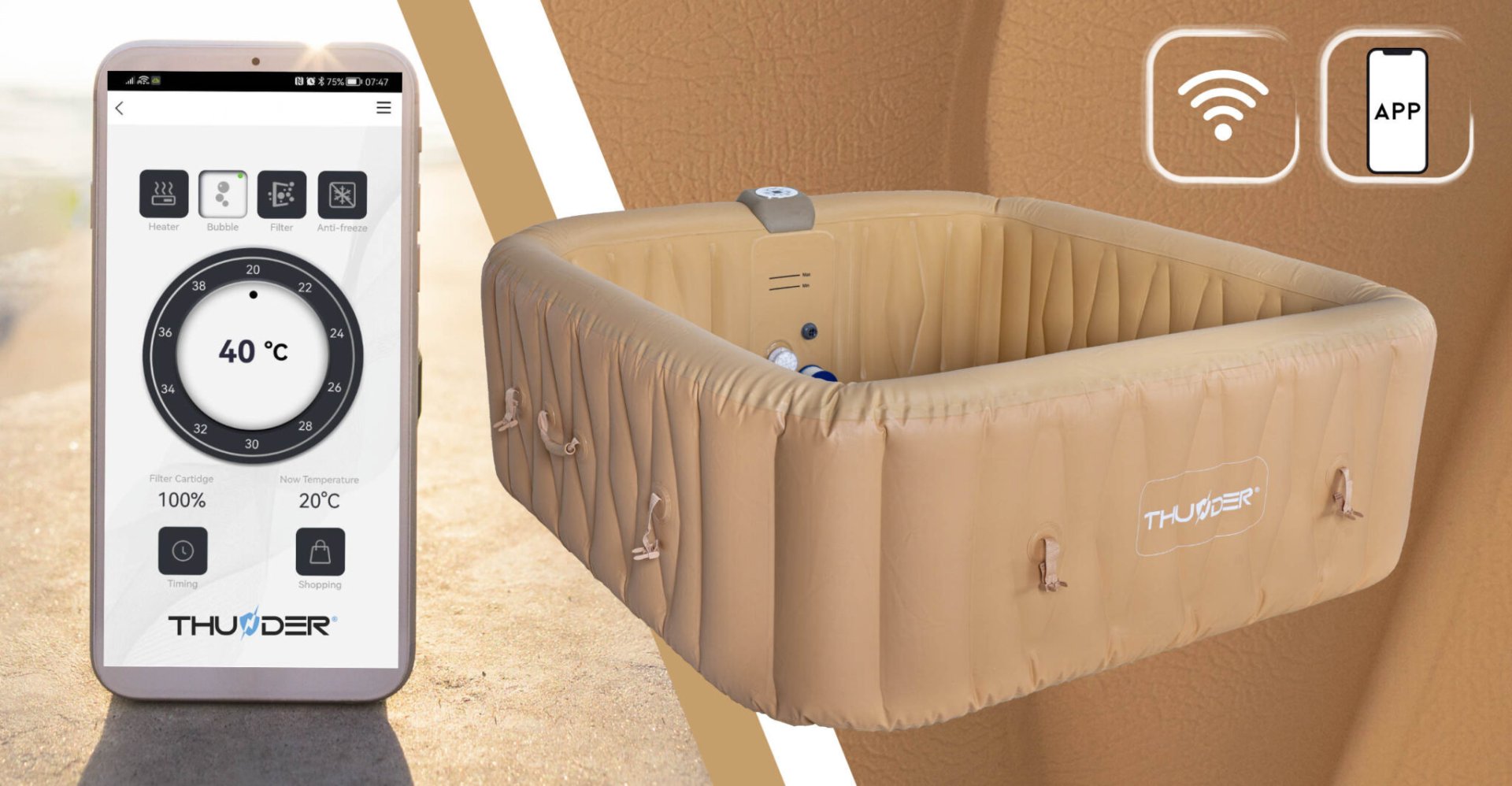 Керуйте надувним джакузі THUNDER®️ FRAPPE зі свого смартфона!