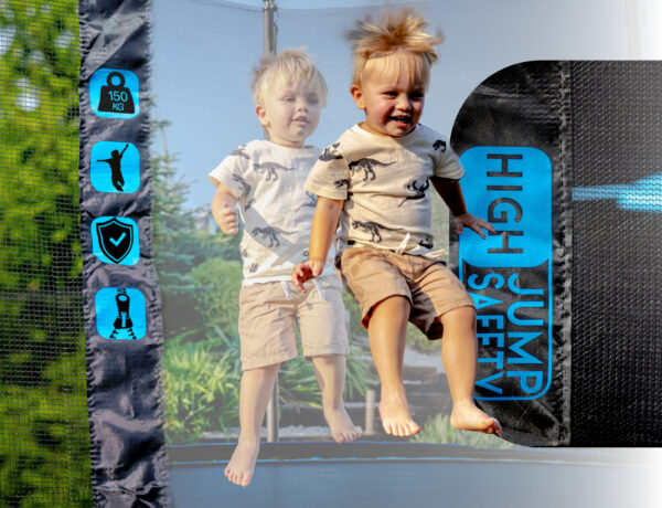 - Завдяки шестикратній прострочці по всьому колу пружинні тримачі в батуті забезпечують стійкість до найвищих навантажень, що означає безпеку користувачів.