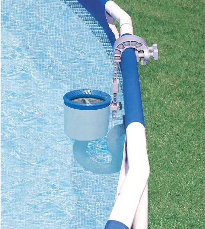 Якщо у вас є басейн з фільтрувальним насосом потужністю від 3000 літрів на годину, то Вам дуже бажано придбати скімер Intex 28000. Скімер дає змогу збирати сміття, листя, різних комах, які плавають на поверхні басейну. Адже він так і називається — поверхневий скімер Intex або "шумівка". скімер приєднується до бортика, як каркасного басейну, так і наливного (надувного) басейну, в якого зверху є надувне кільце для оперізування.