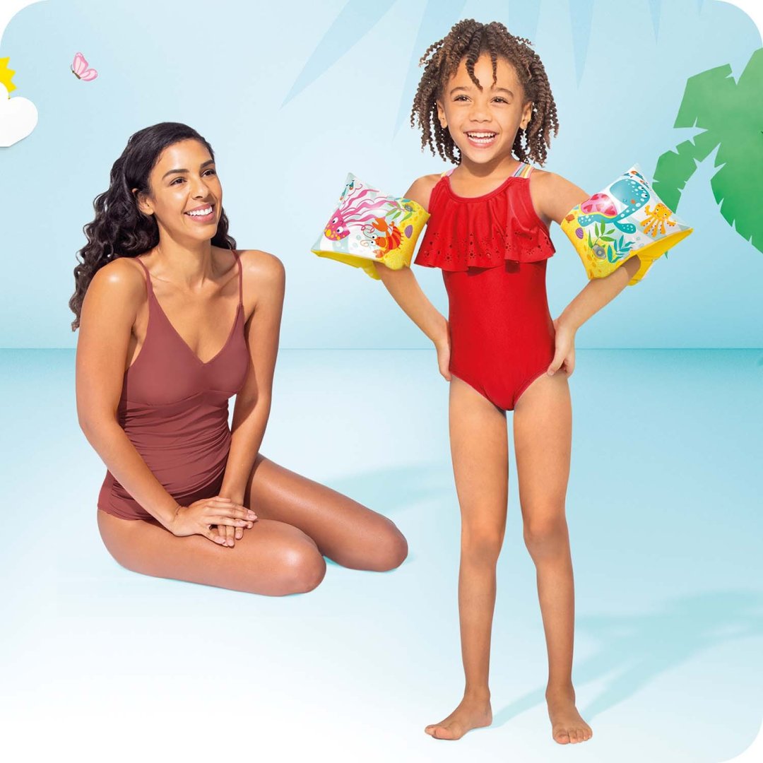 До того ж завдяки яскравому забарвленню, вони будуть відмінно поєднуватися з іншими пляжними аксесуарами. Для безпеки та зручності кожен із нарукавників має по дві повітряні секції з гладкими стінками, щоб Ваш карапуз мав повну свободу руху!