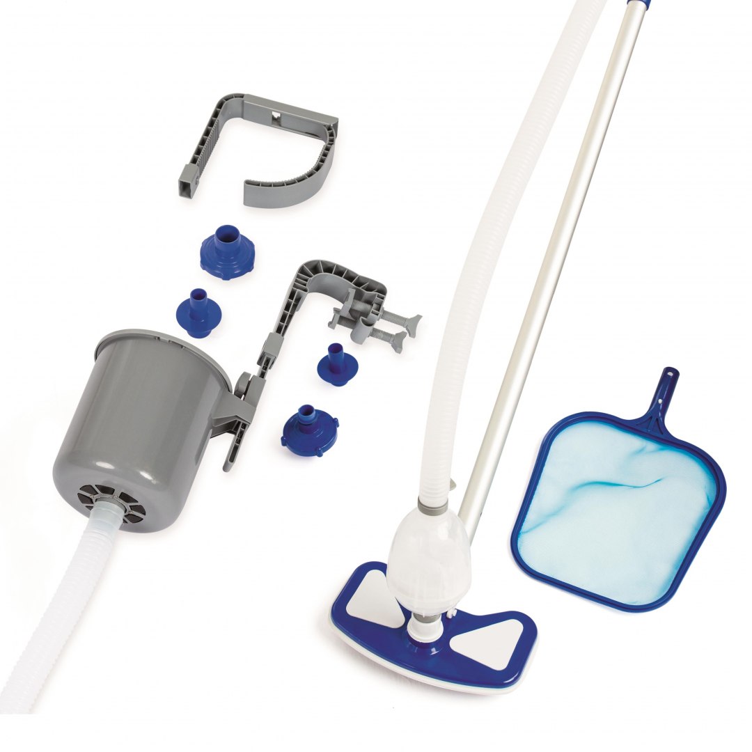 - Практичний повний комплект для обслуговування всіх популярних басейнів Bestway (крім басейнів зі сталевими стінками).