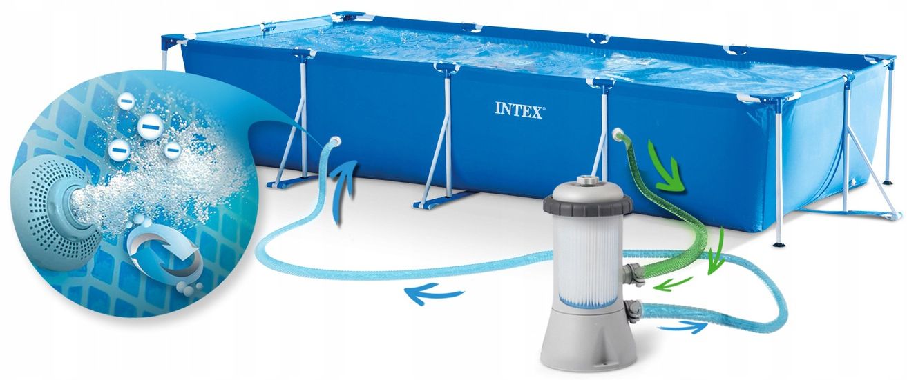 Завдяки посиленій конструкції каркаса з порошковим покриттям і стильному дну басейну, ці басейни доступні в різних розмірах. Починаючи з 3-метрових басейнів, які добре підходять для початку вашої пригоди з басейном Intex, підходять для сімей з маленькими дітьми, і закінчуючи більш ніж 4,5-метровими басейнами, які ідеально підходять для вечірок біля басейну. Інноваційні Т-подібні з'єднання, що використовуються в басейнах, забезпечують легку установку і захищають кінці сталевих частин від іржі, не залишаючи місця для доступу води до сталевих частин. Крім того, композитні фітинги захищають покриття металевих труб від іржі під час використання басейну. Фітинги також містять інгібітор ультрафіолетового випромінювання, завдяки чому вони стійкі до атмосферних впливів і прослужать довгий час. Басейн обладнаний отвором для зливу води і отворами для підключення фільтруючого насоса.