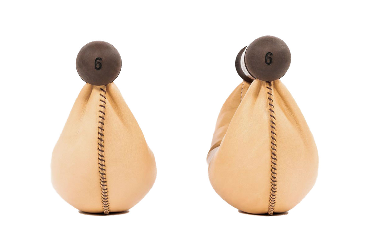 Шкіра гантелей NOHRD SwingBell ретельно відібрана, прошита вручну та наповнена високоякісними гранулами заліза. Вбудована металева рейка надає гантелі форму та стабільність.