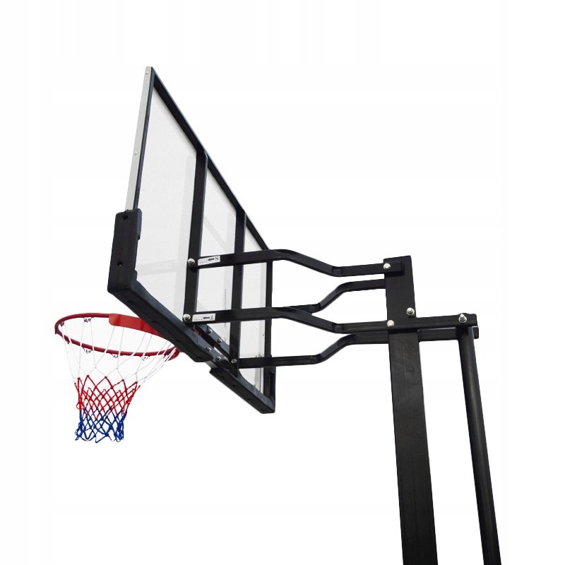 Щит розміром 140 х 80 см виготовлений із ударостійкого полікарбонату, що забезпечує тривалий термін служби та гарну амортизацію м’яча. Кільце діаметром 45 см підходить для гри м’ячами розміру 7, має посилений сталевий профіль 16 мм та оснащене нейлоновою всепогодною сіткою. Висота кільця регулюється в діапазоні від 230 до 305 см за допомогою зручної ручної корби, розташованої на задній частині стійки.