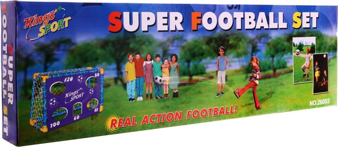 Спортивний набір містить все необхідне для гри, тобто ворота, кілки для кріплення в землі та м'яч з насосом. Додатково будуть кольорові жилети для маленьких футболістів та маркери для гри. Найбільшою принадою набору стане спеціальна мішень для тренування влучності. Вона має вирізані отвори в місцях, в які малюки повинні влучити.