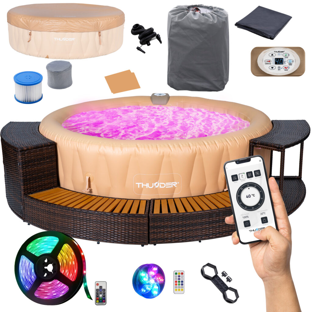 Джакузі-SPA надувне Thunder LATTE 6-місне + коричневі меблі з ротанга – 4 шт
