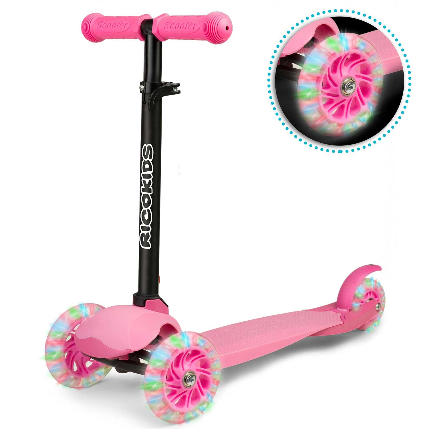 Самокат дитячий триколісний Ricokids Loco – це дитячий самокат-балансир, який поєднує безпеку, комфорт та яскравий дизайн. Завдяки різнокольоровому світлодіодному підсвічуванню на колесах, платформі та передній панелі кожна поїздка стає справжньою пригодою. Триколісна конструкція робить самокат стійким, а керування здійснюється за допомогою нахилу корпусу, що допомагає дитині розвивати координацію та відчуття рівноваги. Регульоване кермо дозволяє підлаштувати висоту під зріст дитини, тому самокат «росте» разом із нею та буде зручним протягом кількох років.
