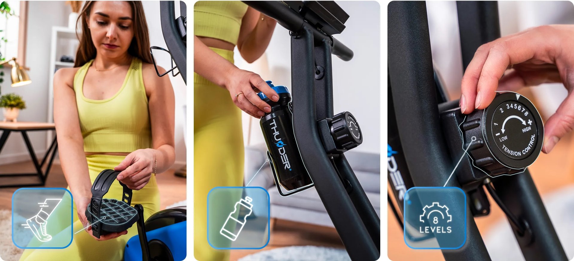 - Зручна спинка – бренд THUNDER пропонує версії X-Bike зі спинкою для більшого комфорту, особливо під час тривалих тренувань. Крім того, спинку можна скласти для зручного зберігання.
