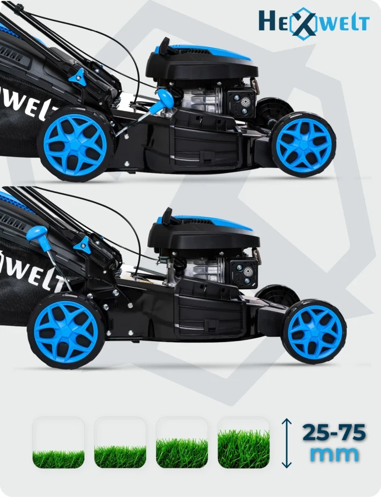 Бензинова газонокосарка HW-KS-150 від Hexwelt - це ідеальне рішення для вимогливих користувачів, які цінують зручність і високу якість косіння.