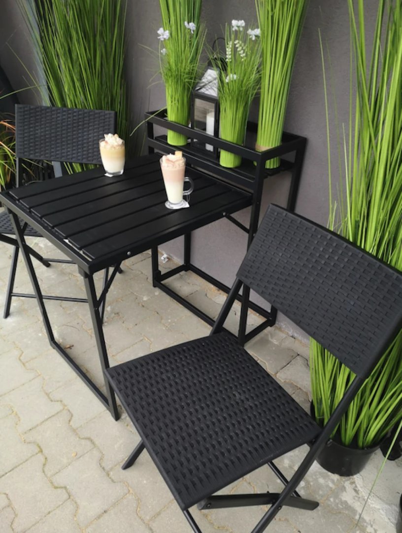 Завдяки розкладному механізму, набір меблів легко зберігати, коли він не використовується. У складеному вигляді стіл перетворюється на стильний столик для квітів, додаючи вашому балкону додаткову функціональність та естетику. Невеликі розміри комплекту дозволяють легко зберігати його поза сезоном, не займаючи багато місця. Це особливо важливо для тих, хто має обмежений простір для зберігання.