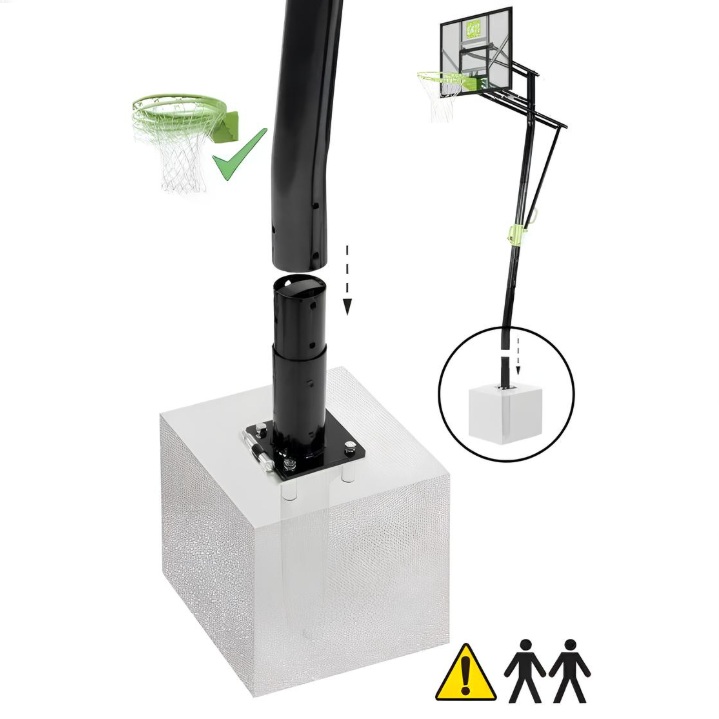 Це чудова альтернатива для тих, хто не хоче кріпити баскетбольний щит до стіни. Завдяки бетонуванню в землю, стійка не потребує зовнішніх опор і залишається непорушною навіть при потужних кидках. Водночас варто заздалегідь визначити точне місце встановлення - після монтажу переміщення вже не буде можливим.