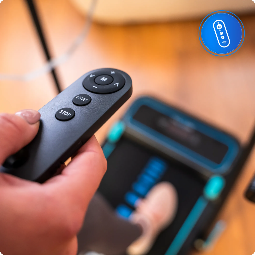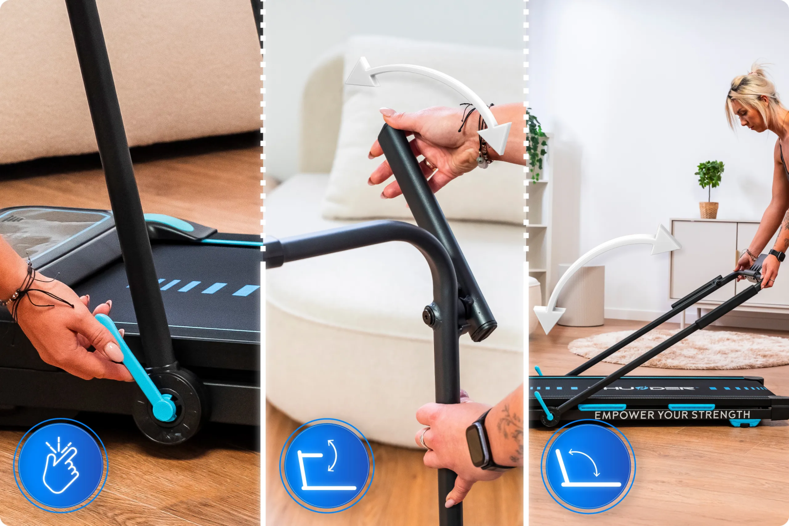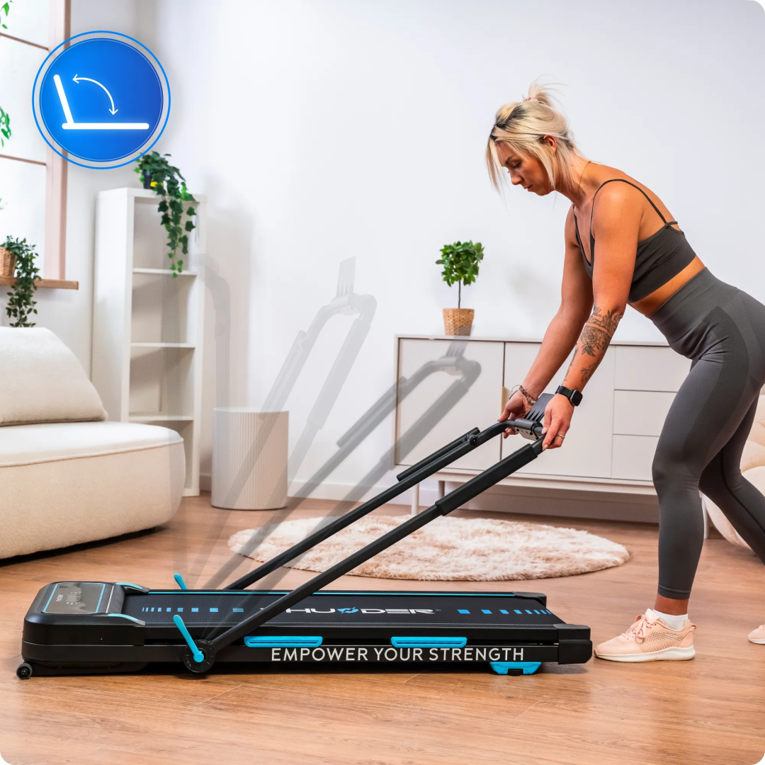 Бігова доріжка висотою всього 14 см гарантує, що вона поміститься практично будь-де – під ліжком, диваном або в шафі. Після закінчення тренування її можна швидко сховати і звільнити простір, а коли ви знову будете готові до занять, вона за лічені хвилини буде готова до використання.
