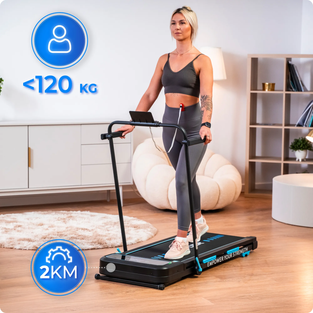 Завдяки ультратонкому дизайну бігова доріжка поміститься під будь-який робочий стіл і забезпечить комфортне тренування навіть під час роботи. Елегантний дизайн і тиха робота пристрою роблять це розкішне рішення поєднанням комфорту, здоров'я та стилю в одному.