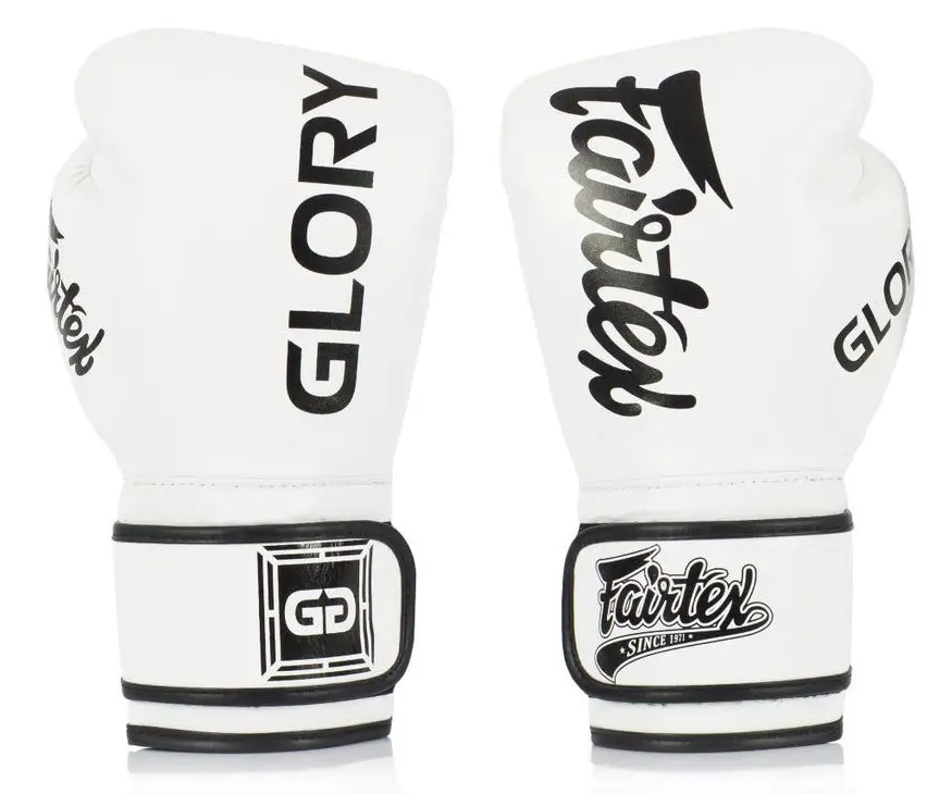 Модель оснащена ремінцем на липучці для надійної фіксації зап’ястя та фіксатором великого пальця, який дозволяє правильно стискати кулак і забезпечує максимальний захист під час спарингів і тренувань. Унікальні принти GLORY на одній рукавичці та Fairtex на іншій підкреслюють ексклюзивність цієї колекційної моделі.