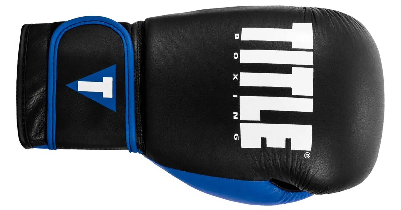 Рукавички боксерські шкіряні з бинтами TITLE Boxing Dynamic Strike розмір 12 унцій, чорно-сині