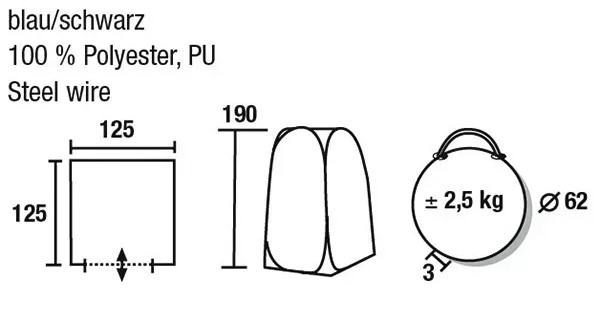 Багатофункціональний намет High Peak Rimini може бути використаний як роздягальня, душова кабіна або туалет. Каркас виробу виготовлений із пружинних сталевих дуг. Виріб займає мінімум місця, вхід закривається на двосторонню блискавку, установка тенту не займає багато часу, виконується дуже швидко та легко.