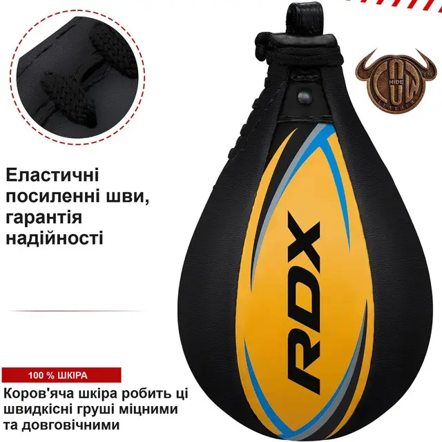 Пневмогруша боксерська шкіряна з кріпленям RDX 2Y Multi діаметр 54 см, чорно-жовта
