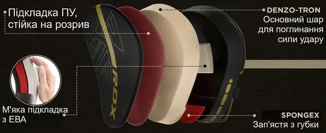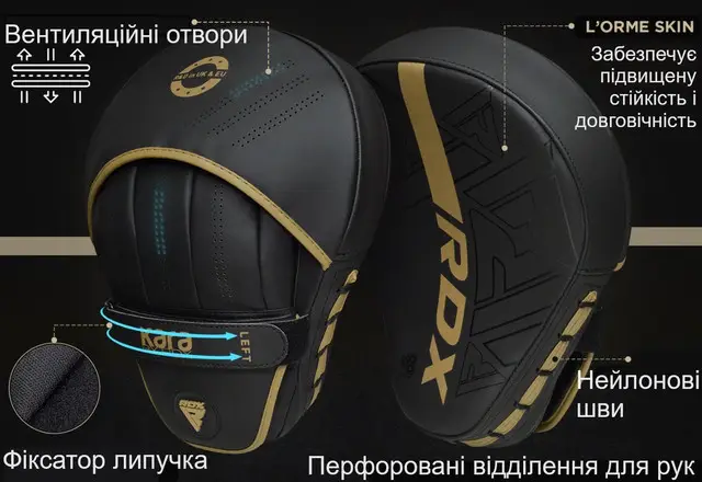 RDX Focus з інноваційною піною Polygonal Fusion забезпечують максимальне полегшення та комфорт навіть під час найважчих тренувань. Ці лапи мають ергономічний дизайн для кращої маневровості.