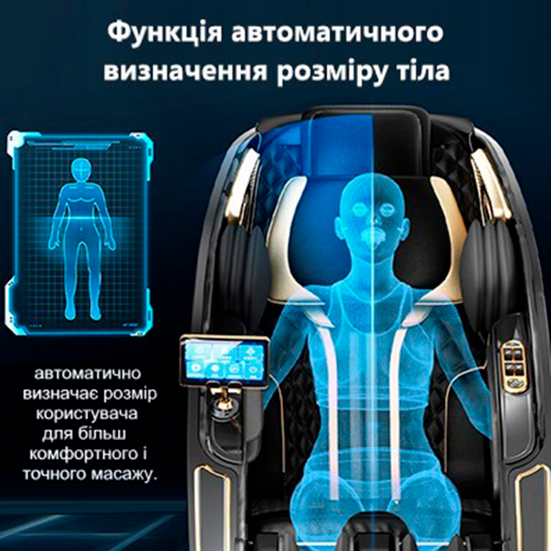 Ця модель крісла включає в себе функцію автоматичного визначення форми та розміру тіла для більш точного та комфортного масажу.