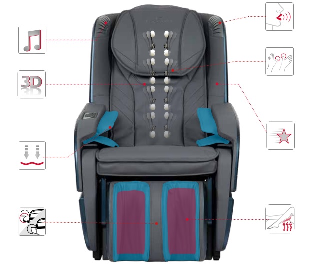 - Технологія Braintronics синхронізує ваші мозкові хвилі за допомогою звукової стимуляції. У поєднанні зі спеціально розробленою програмою масажу ваше втомлене тіло може повністю розслабитися.