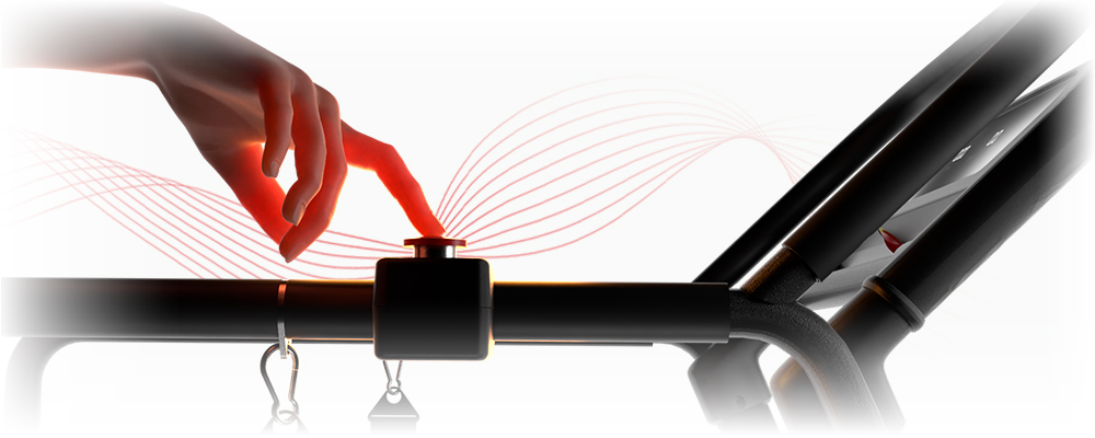 - велика кнопка безпеки для миттєвого вимкнення доріжки