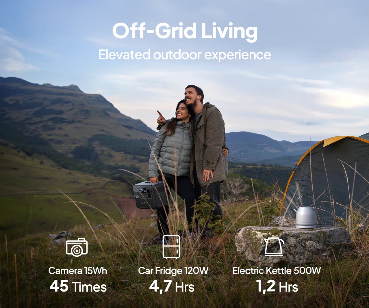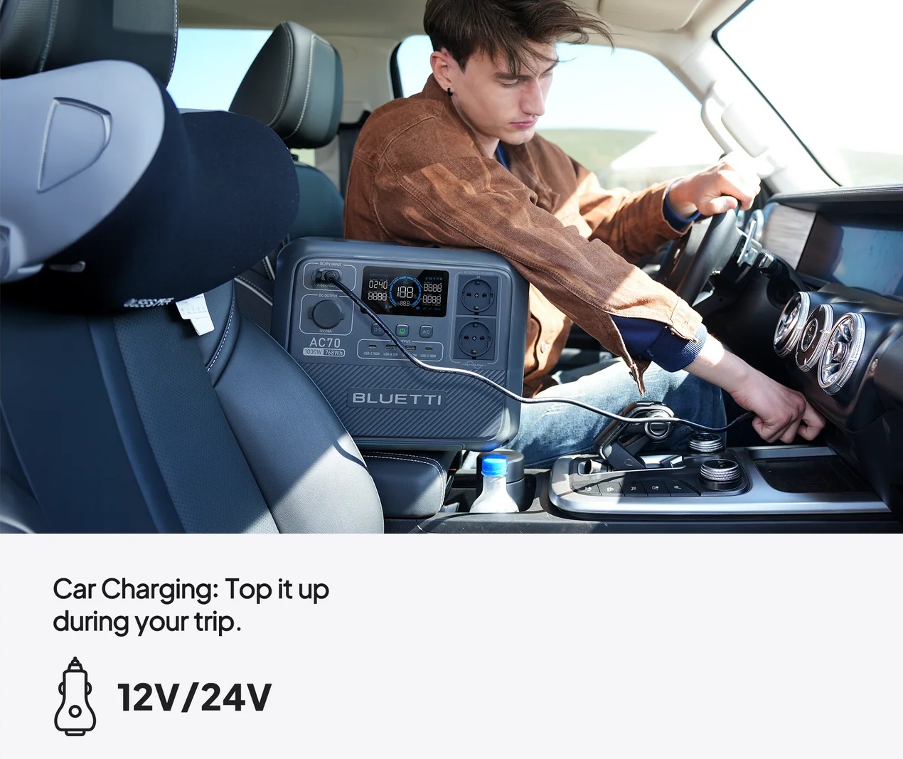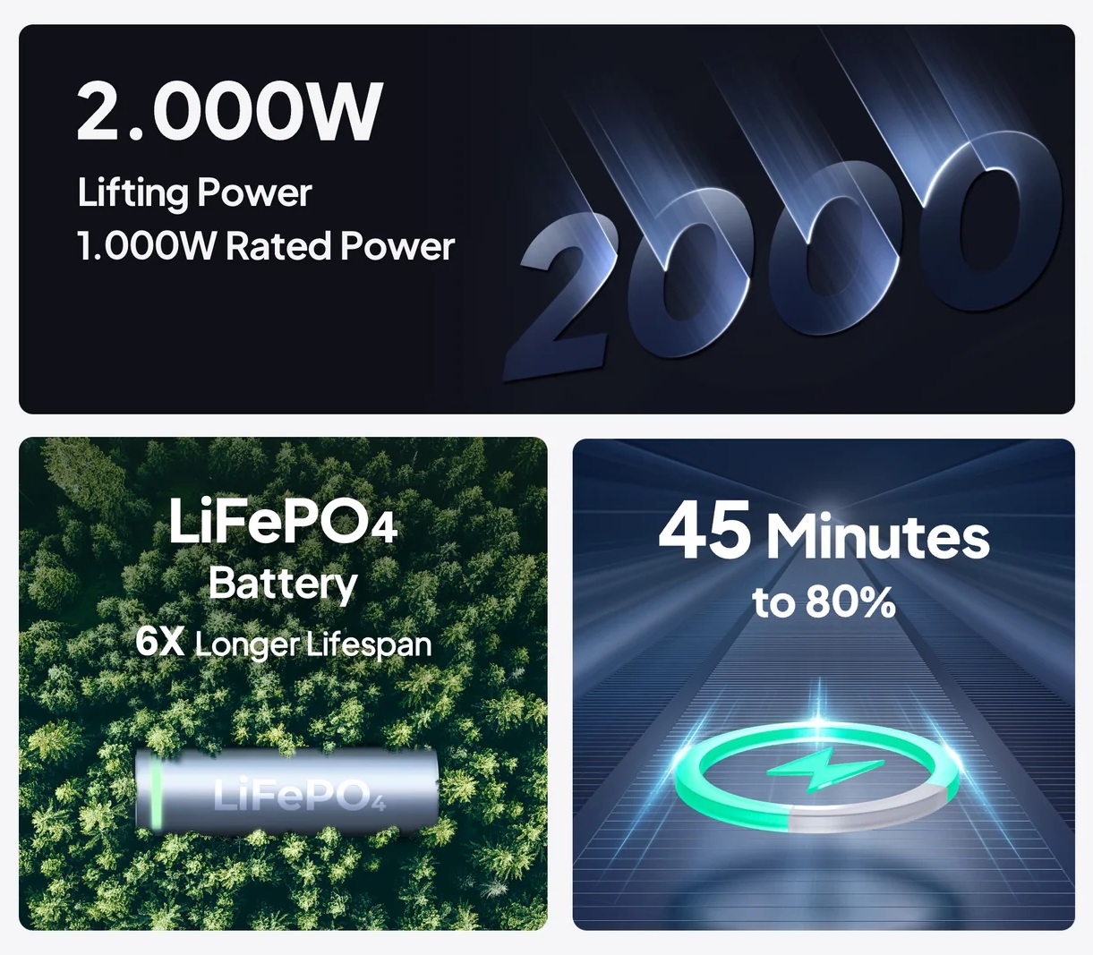 Станція оснащена двома розетками AC 230 В з номінальною потужністю 1000 Вт (і піковим значенням до 2000 Вт), двома USB Type-C портами потужністю 100 Вт кожен, двома USB Type-A (потужністю 12 Вт), а також автомобільною розеткою на 120 Вт, що робить її універсальним рішенням для підключення різних пристроїв. Вихідний сигнал у вигляді чистої синусоїди гарантує безпечну роботу чутливої електроніки.