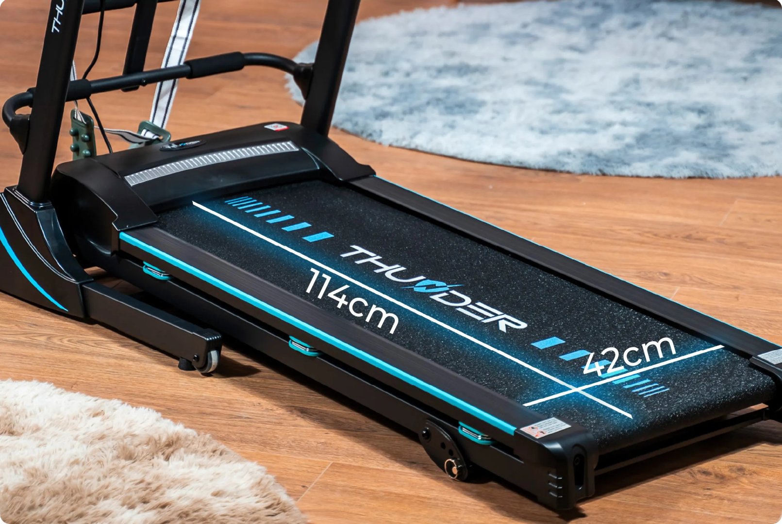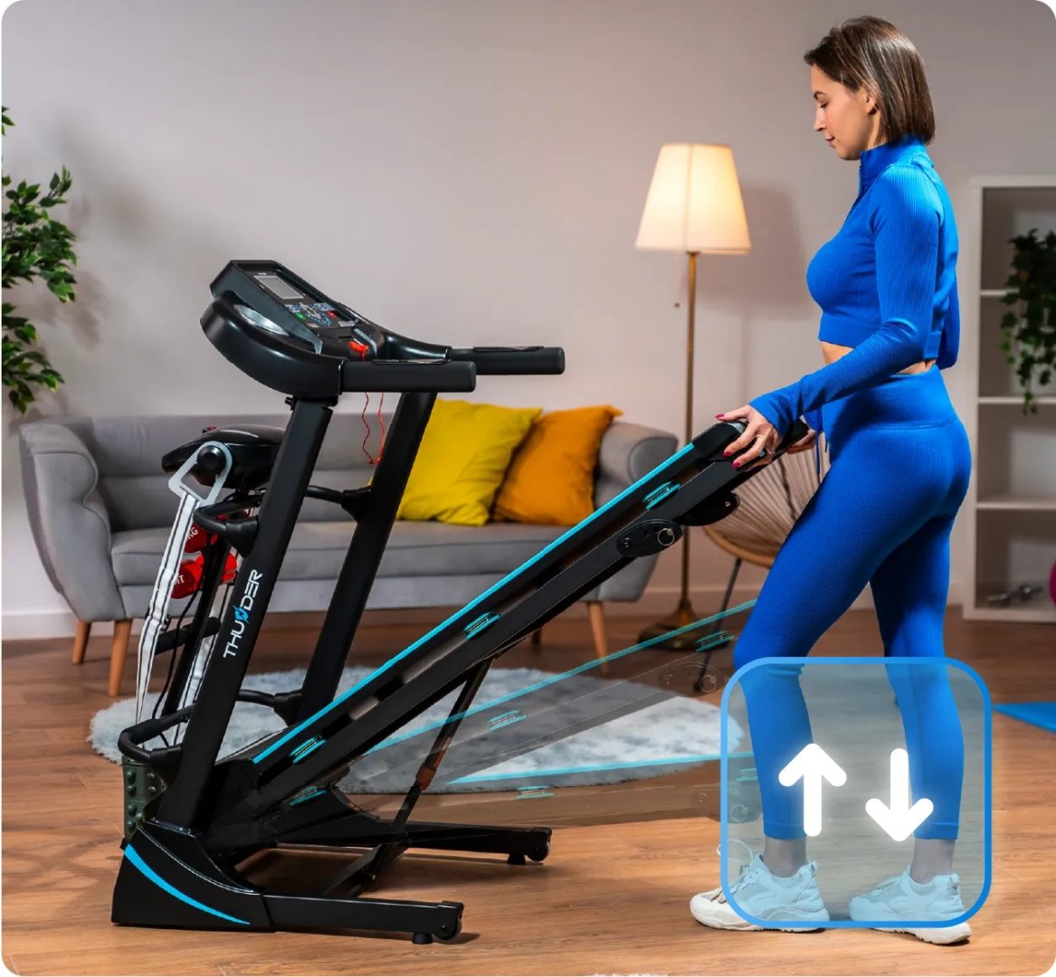 Електрична бігова доріжка THUNDER ICON-D-BLACK — ідеальне рішення, яке поєднує комфорт, функціональність і сучасні технології, гарантуючи ефективне тренування щодня.