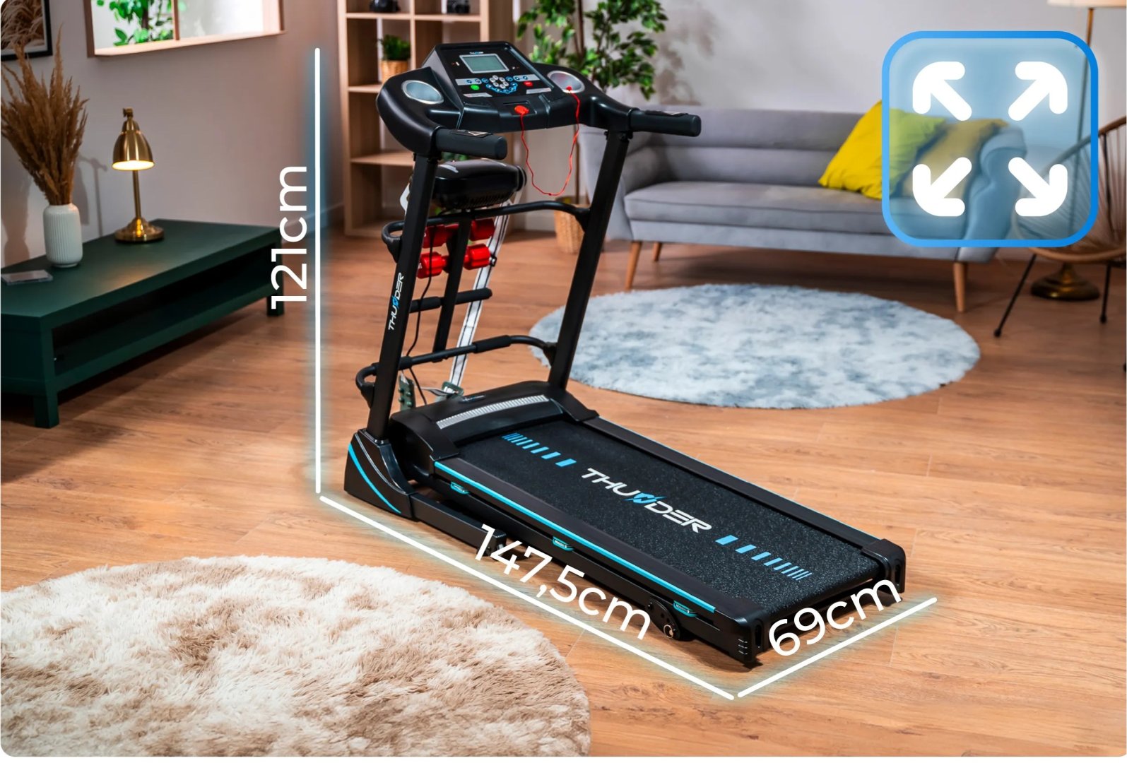 - Розміри складеної бігової доріжки: 69 х 84 × 121 см