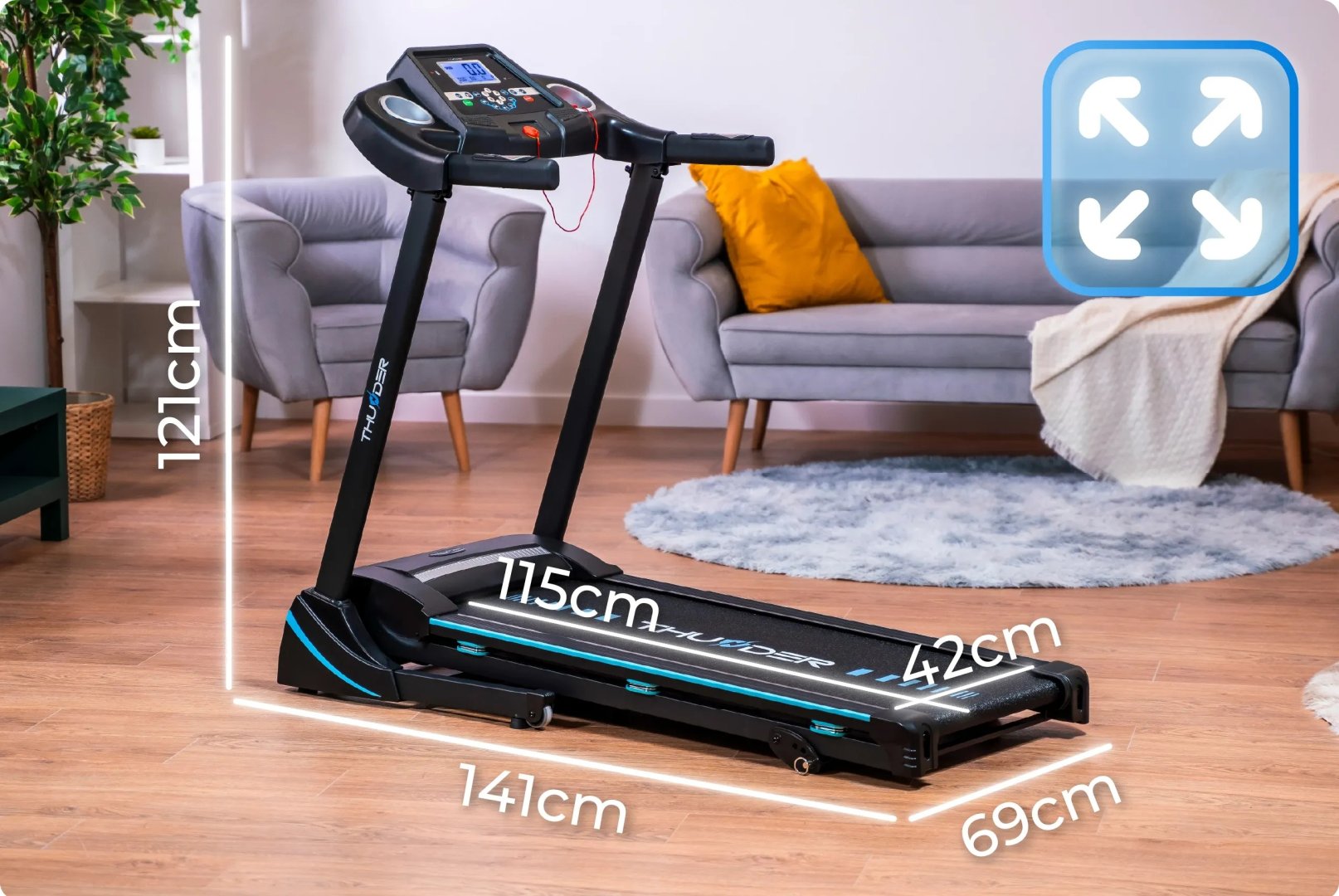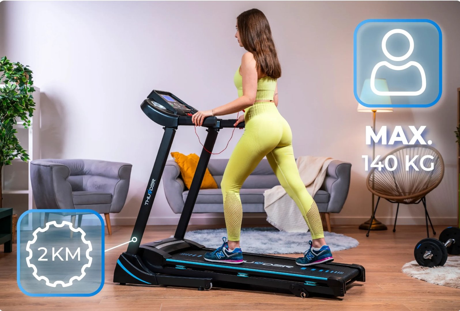 Бігова доріжка THUNDER ICON-BLACK — ідеальне рішення, яке поєднує комфорт, функціональність і сучасні технології, гарантуючи ефективне тренування щодня!