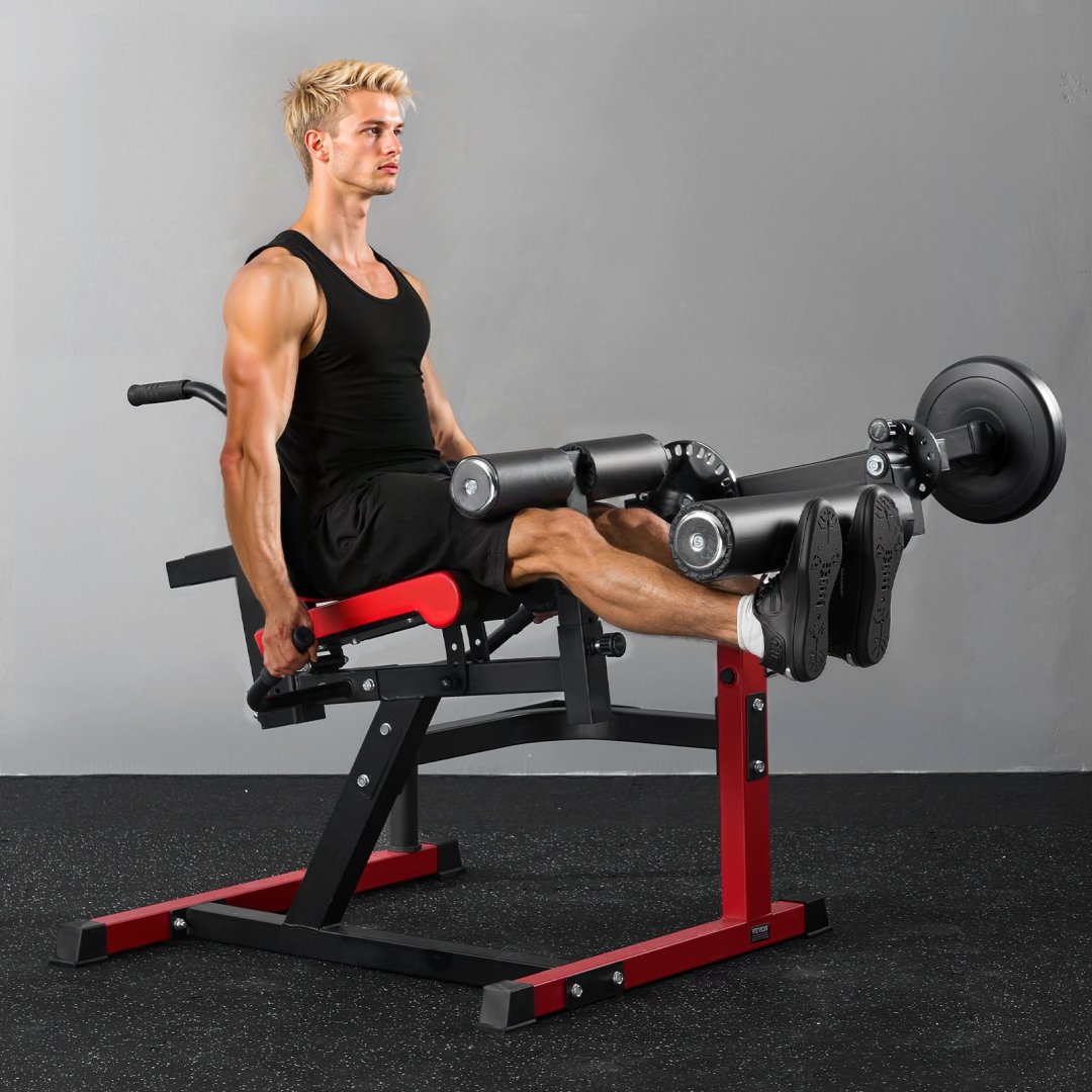 - Оснащений 8-рівневою вертикально регульованою накладкою для стегон, 24-рівневою регульованою грифом для розгинання ніг та 12-рівневою регульованою грифом для литкових м'язів, ви можете регулювати положення для тренування, тренажер для підколінних сухожиль та квадрицепсів відповідає різним потребам у тренуваннях різних сімей.